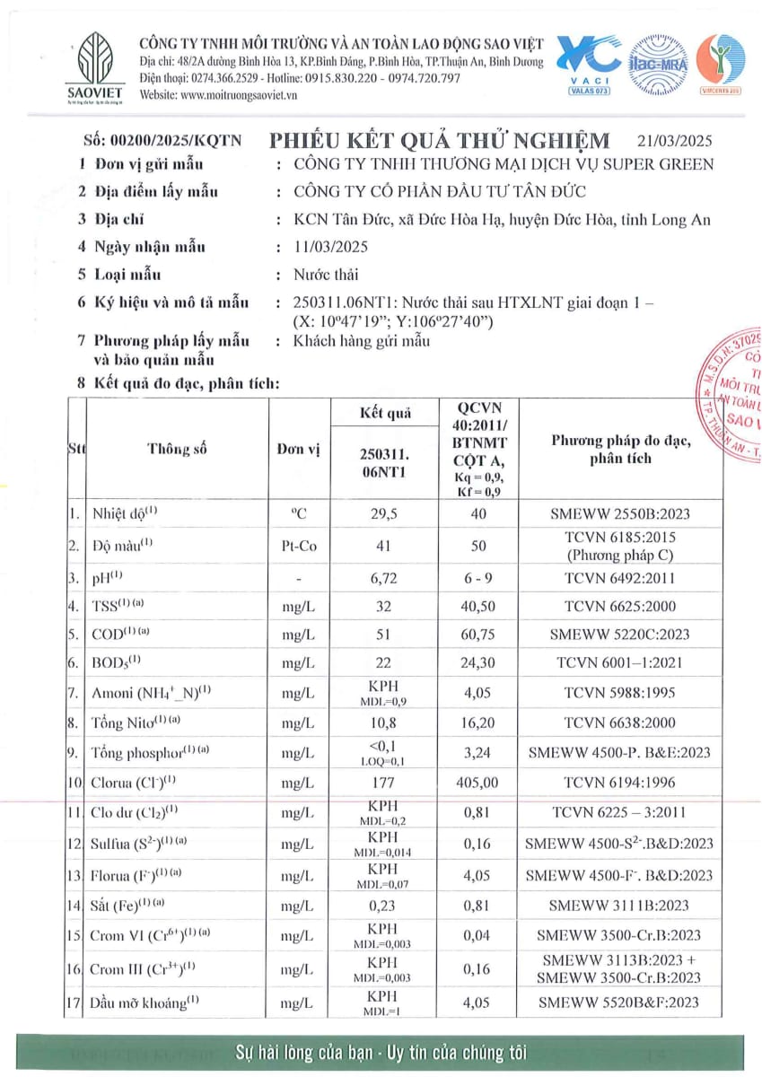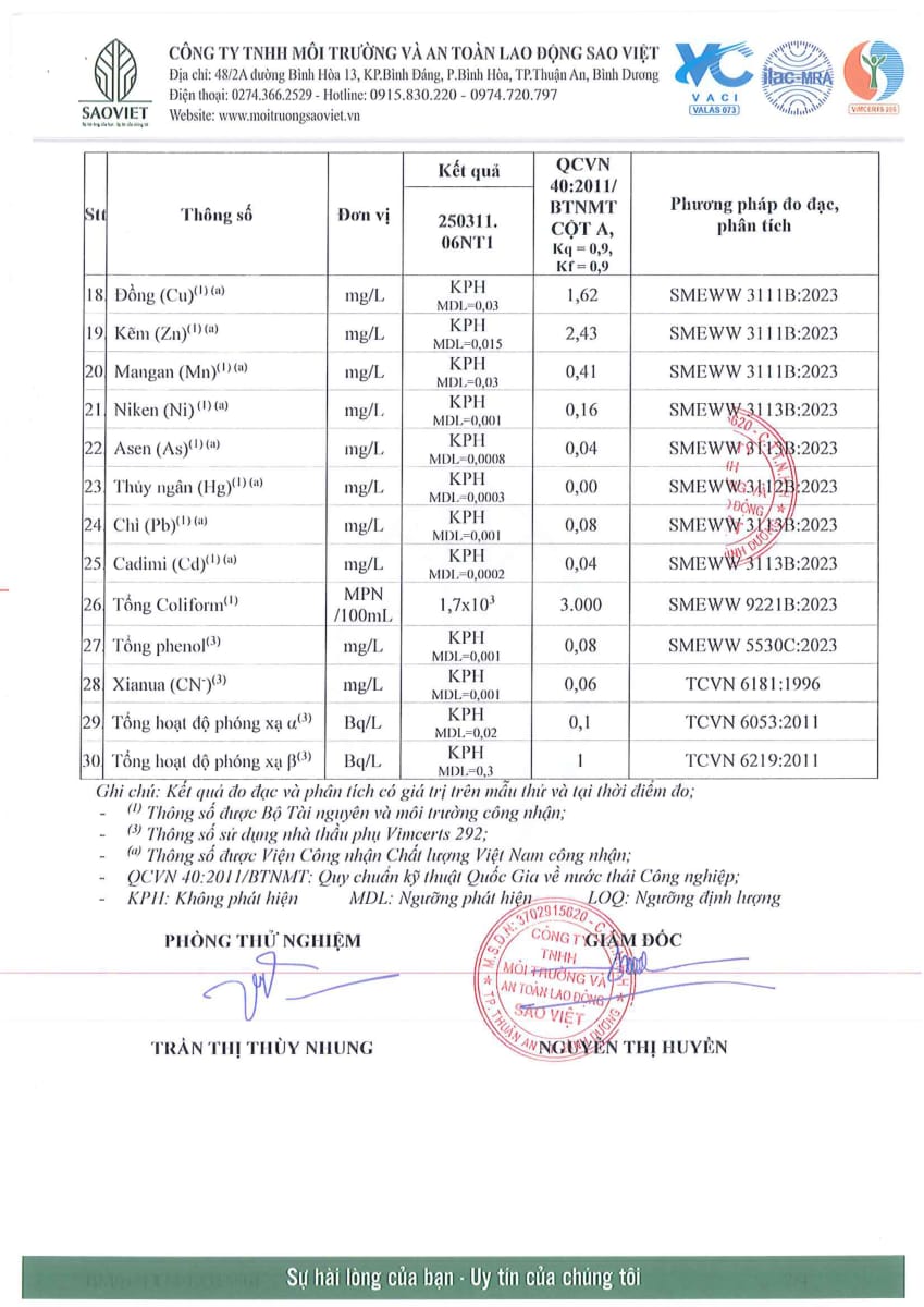 Chất lượng nước thải định kỳ - Quý IV 2024